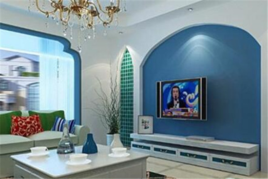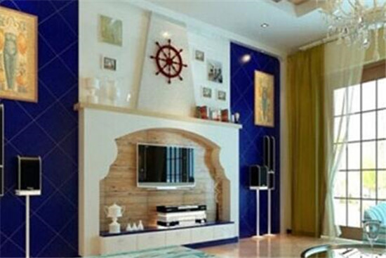 這是一款再適合不過的地中海電視墻,采用亮色系來裝飾墻面,加入了其它的設計方式,尤其是墻面上的花紋,與整個客廳相呼應。