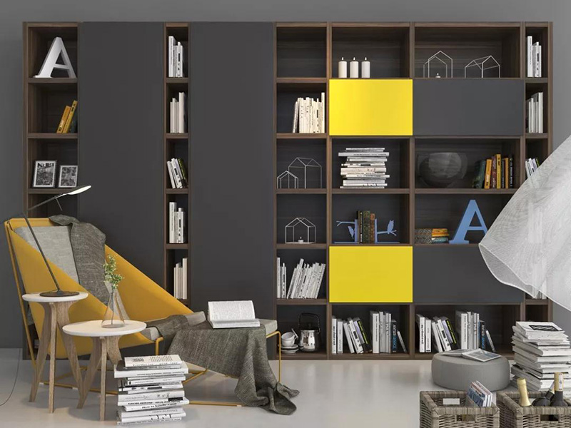 墻上空間也不要浪費,做一個吊櫃擺放書籍裝飾品。