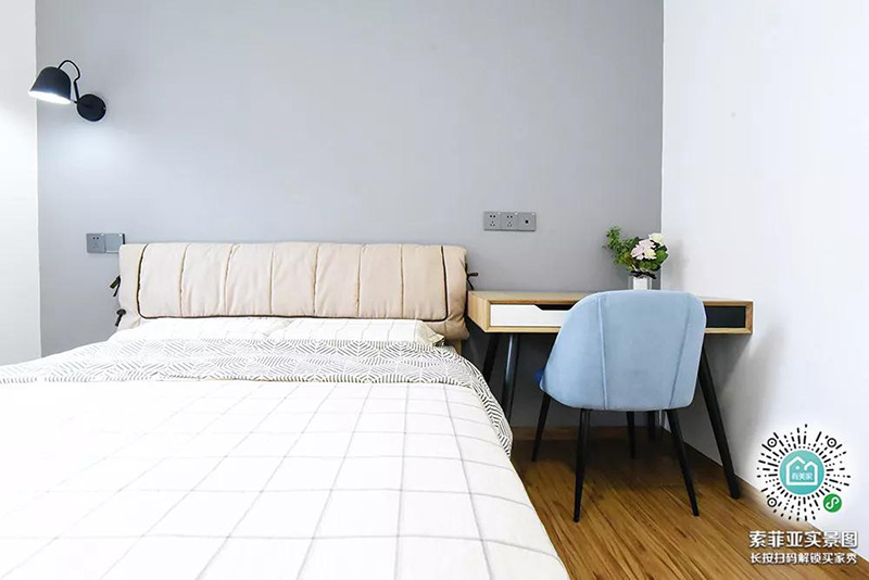 追求實用性,可以在床頭邊擺放一張書桌臺或者梳妝臺。
