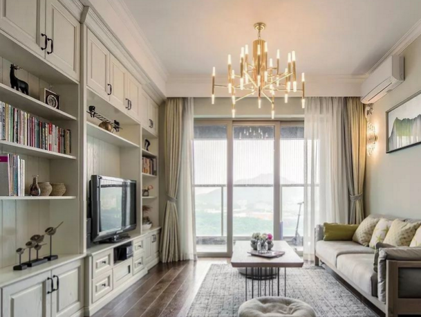 在設計電視櫃的高度尺寸時候,要讓使用者就坐后的視線正好落在電視屏幕的中心。如以一般的客廳沙發為例,一般的客廳沙發坐面高度在400mm左右,而正常人體端坐的坐面到眼睛的高度通常在660mm,相加就是1060mm,這就是我們常說的視線高。這是用來測算電視櫃的高度是否符合人體健康高度的標準。如果沒有什麼特殊的要求,電視櫃與電視機之間的中心高度最好不要超過這個高度。一般來說,韓式田園風格電視櫃一般高度尺寸在620mm左右,歐式田園風格電視櫃高度尺寸在438mm左右,現代風格電視櫃的高度尺寸在465mm左右,美式田園電視櫃一般高度尺寸在670mm左右。