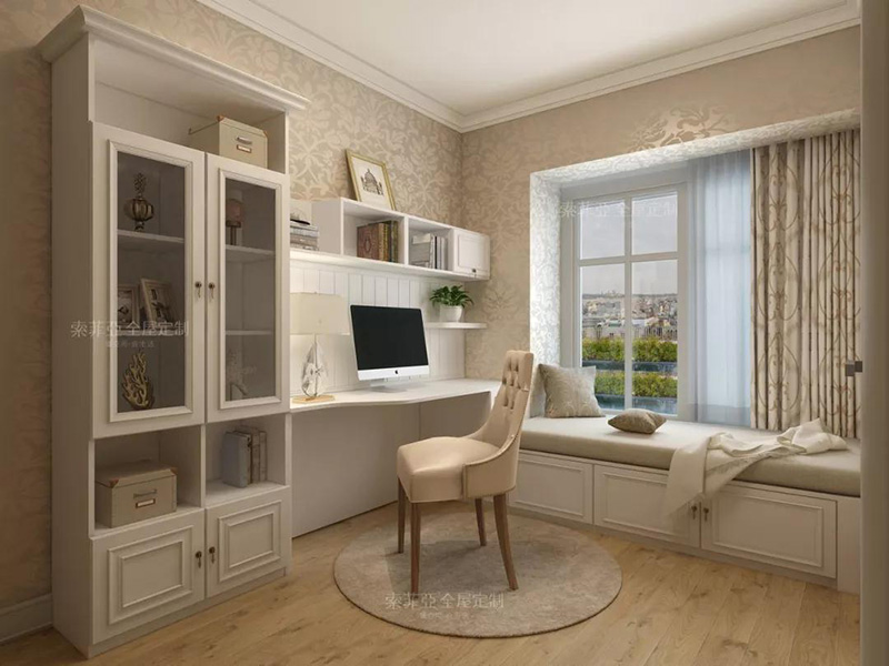 把書桌延伸到與飄窗相連,打造採光優秀、視野廣闊的工作型飄窗。