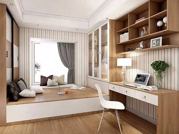 家里房間不多,但是還是想要一間書房,這時榻榻米就派上用場了,可以在家里安裝一個組合套櫃,里面包含了立櫃、置物架、書架、床、書桌等等,是不是非常的方便呢?要客製化榻榻米,並根據空間的實際情況,這樣可以讓小空間發揮更大的作用。在客製化時還是要根據空間的實際情況來決定。
