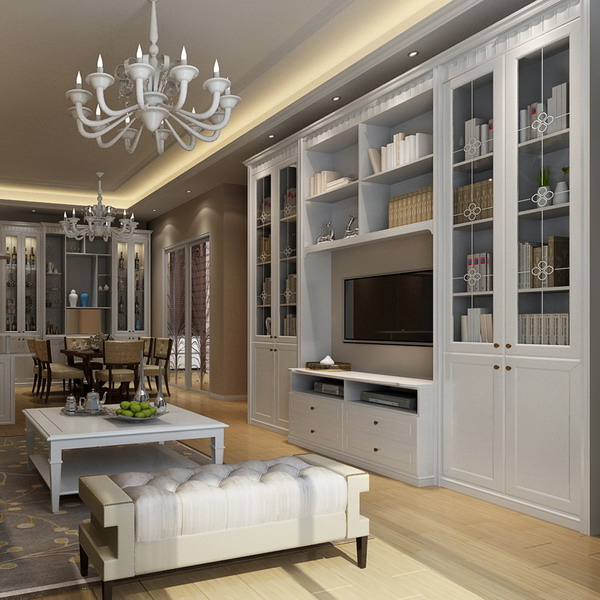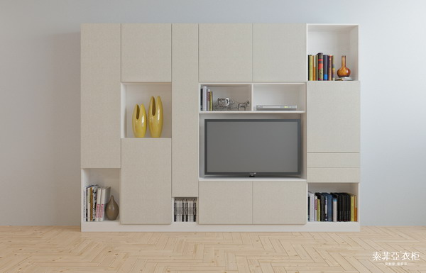 對于小戶型的客廳,電視組合櫃是非常實用的一種選擇,這種類型的家具一般都是由大小不同的方格組成,上部比較適合擺放一些家飾品,櫃體深度至少要保持30公分;而下方擺放電視的櫃體深度則至少要保持50cm,同時在選購電視櫃時也要考慮組合櫃整體的高度和橫寬與墻壁的面寬是否協調。
