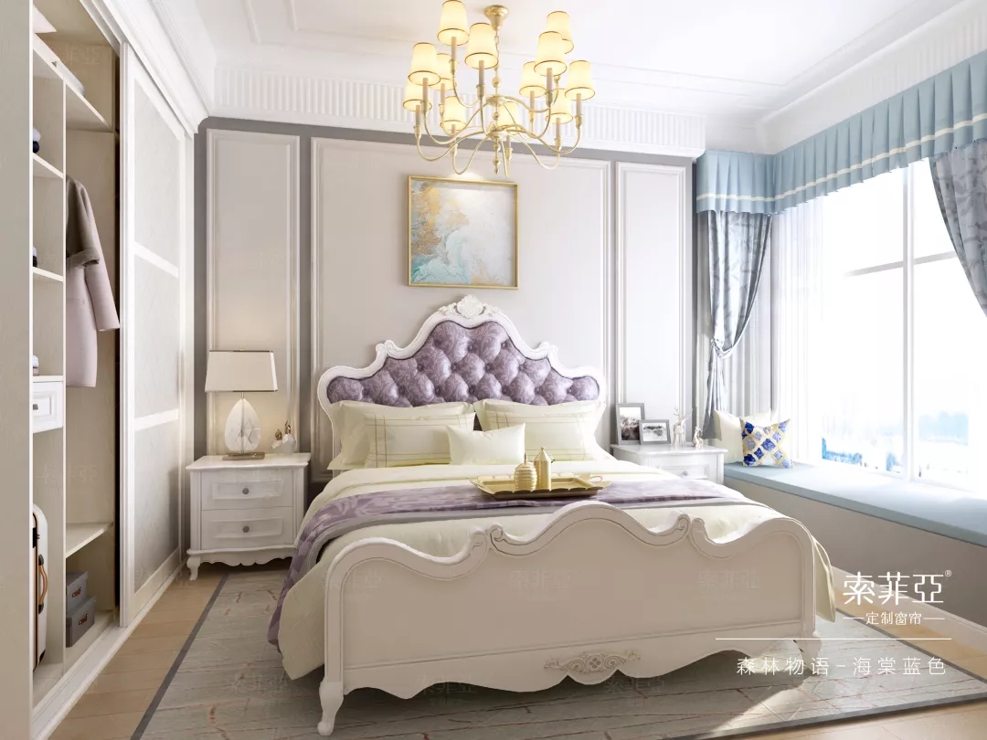 就臥室來說,最重要的功能是休息,所以窗簾的遮光性就要多考慮。表姐對光線就不是很敏感,開燈也能沾枕睡,而且喜歡在飄窗上看書休息,所以我的需求是保護隱私、休閑和美觀。將飄窗布置成休閑角就成了最重要要求。