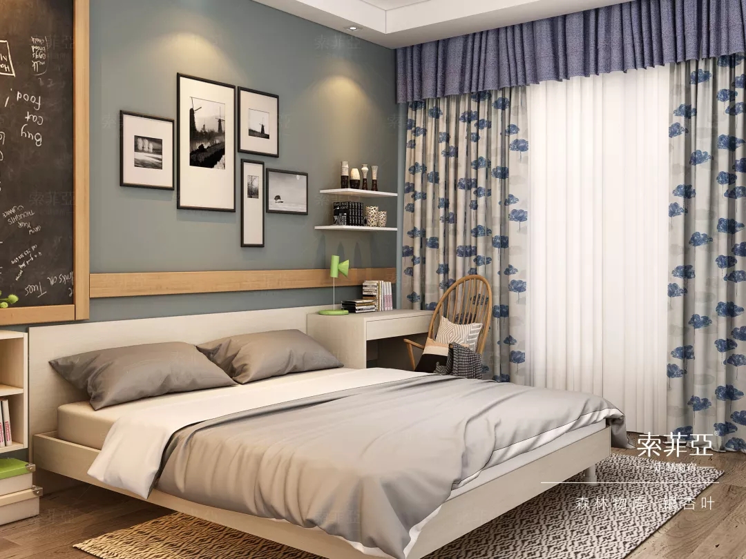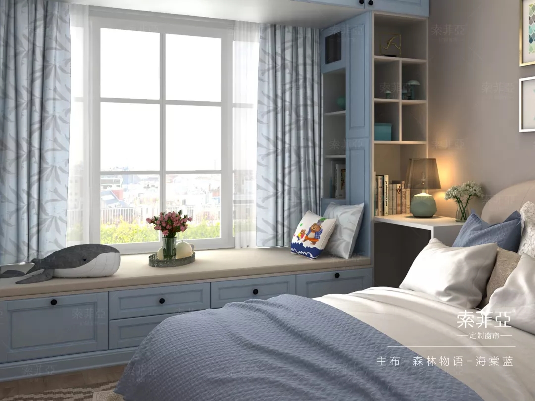 如果想有一個相對獨立的休閑區,那就整墻安裝窗簾,利用窗簾隔出一個獨立的飄窗休息區,再靠窗安裝一層窗紗,保護隱私和飄窗墊,又能柔和光線,看書不傷眼。