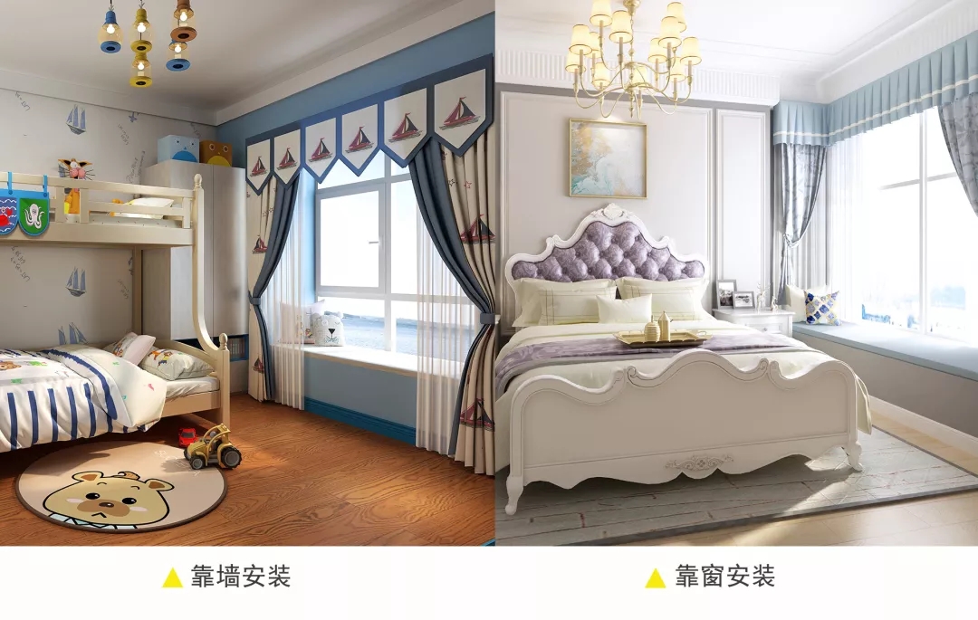 如果是個大飄窗,那就看自己的需求了。如果想要讓臥室看起來更寬敞,就選擇靠窗安裝的方式。