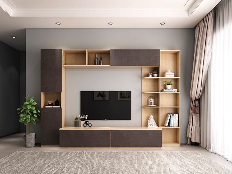 黑色是永恒的經典主題,再搭配一個造型時尚的電視櫃,無疑是畫龍點睛。另外,簡單純色背景墻,映襯出電視櫃滿滿的質感,原木色的家具,讓人感覺回歸自然一般。