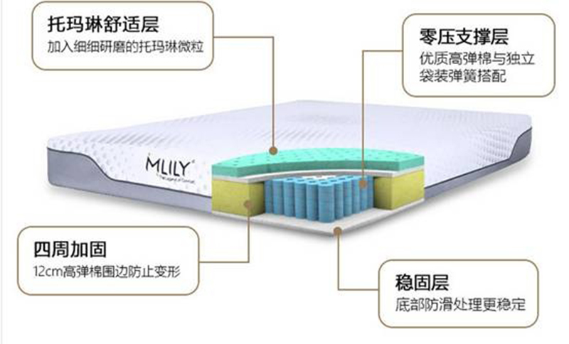 首先,要有足夠的厚度(不少于50px)的柔軟材料,以保證肌肉的放松舒服和血液的正常循環:其次,要軟硬適中、承托力足夠,以保證人體骨架被自然地全面承托;最后,要有良好的透氣性,使床墊與身體長時間接觸部分的溫度不至過高,以保證連續睡眠。