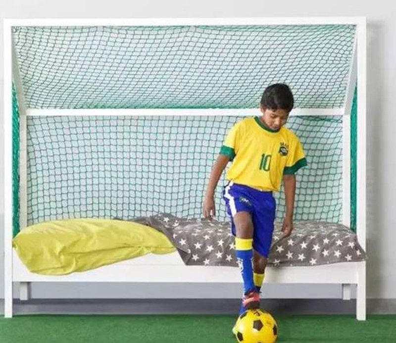 荷蘭制作的兒童床,使用白色松木加上綠色的網,完美呈現綠茵場上的激情。
