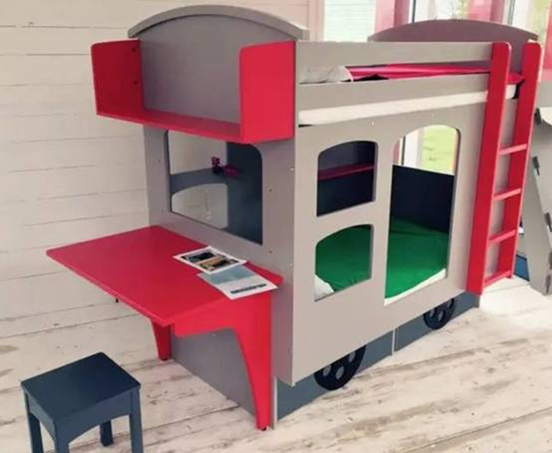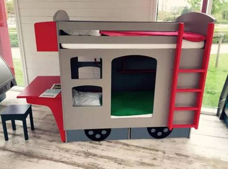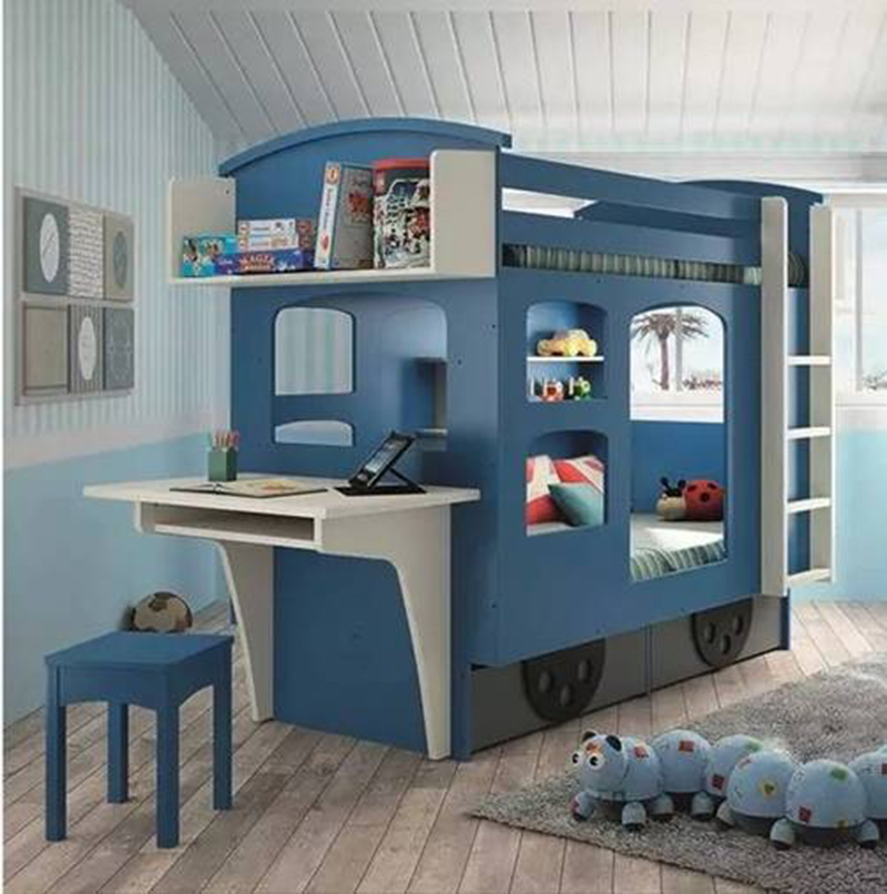 像貨運火車的一節小車廂,這款的兒童床除了睡覺以外,還有很多功能,比如書桌、書架,娛樂學習休息都可以在床上完成啦!