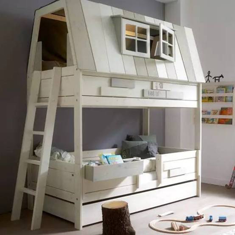 就像動畫里經典的小木屋,樓上是孩子休息的床,樓下則是一個游戲區。