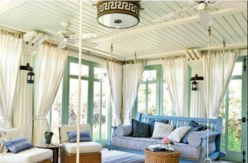 (2)歐式風格裝潢中,窗幔是一種緣起于文藝復興時期的裝飾時尚,這種帶流蘇的羅馬式波幔在融入了現代設計理念和現代元素后,發展出了現代褶裙幔、簡約折疊幔等多種樣式,時尚大方,深受喜愛。考慮做窗幔的業主,建議選用窗簾盒,使窗幔、窗簾、與吊頂形成一個風格統一的整體。如果選用了窗簾桿,吊環與窗幔簾身的對比則顯得上輕下重,在莊重的歐式風格中也略顯突兀;