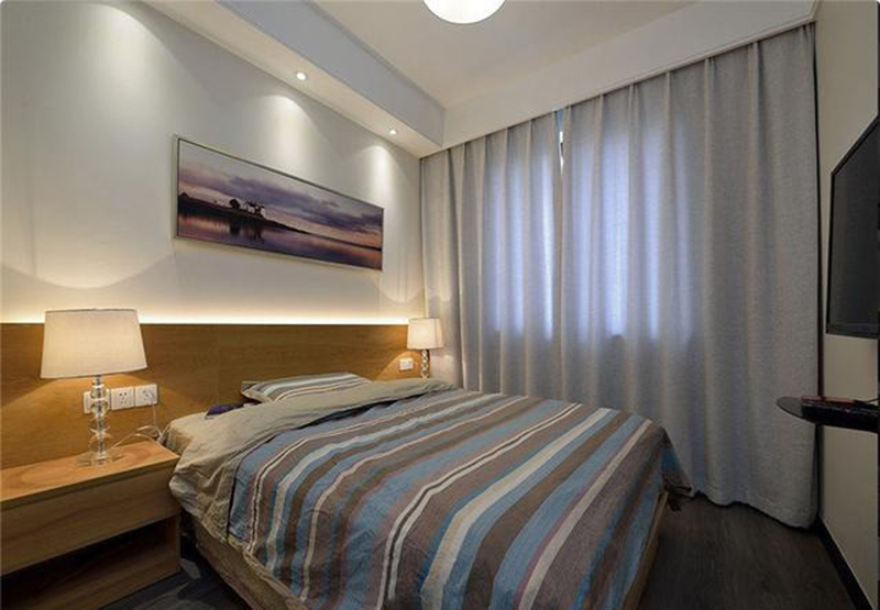 在窗簾盒中安裝滑軌,可以頂到墻壁,能夠完整覆蓋整個窗戶,這樣的設計比較適用于房間面積、窗口的比較大的空間,實現良好遮光的同時也能突顯房間的大氣。對于面積較小的房間,則顯得過于壓抑,建議選用窗簾桿,使空間在視覺上得到延伸,將窗簾桿往窗口兩邊各延伸0.2米,也能達到很好的遮光效果。