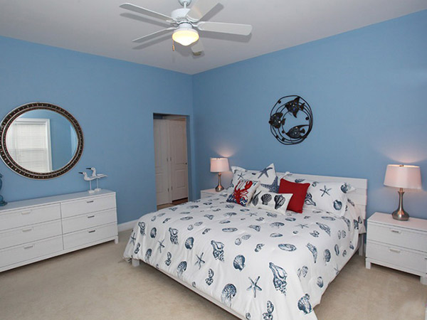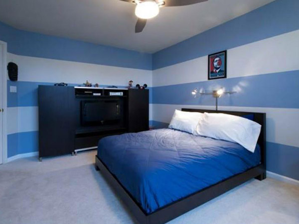 藍、白兩色是最經典的搭配顏色,藍白條紋的床品搭配藍色的墻面,感覺讓人生活在大海邊,享受大海的自由。