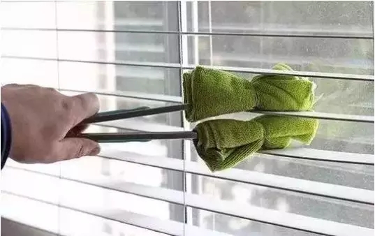 說起窗簾,最后提一提百葉簾。百葉簾的葉片上最容易積灰塵,而且難以清潔干凈。在這里不妨試試“懶人清潔法”。用抹布蘸些溫水溶開的清潔劑,把濕抹布纏在鐵夾上,夾住葉片來回抹一遍,就能輕松除塵啦。
