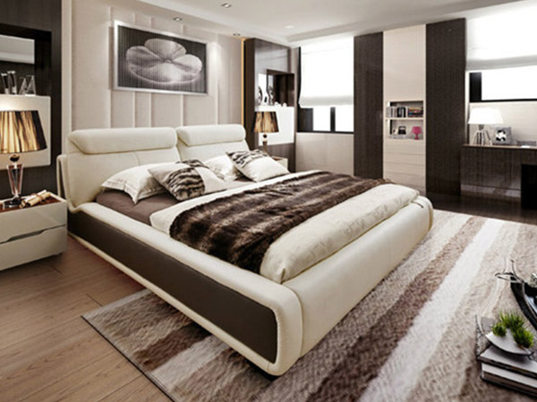 在進行臥室設計時,設計重心就是床,臥室空間的裝潢風格、布局、色彩和裝飾等一切都應以床為中心來進行。床在臥室中所占的面積大,所以應該好好安排床在臥室中的位置,然后再考慮其他設計。當設定好床的位置、風格和色彩之后,臥室其余部分就可以開始設計了。現在很多臥室的面積都比較有限,所以切記不要在臥室里面擺放太多家具,以免讓人造成心理壓抑。
