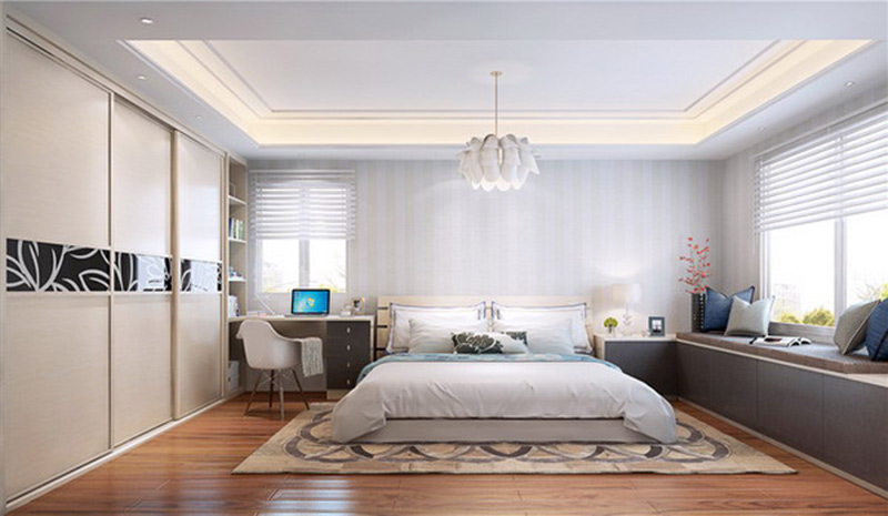 在臥室配有飄窗,不但可以享受充足的室內光線,還可以飽覽室外秀美景觀,主臥的飄窗更注重體現溫馨寧靜。飄窗還可以作為很不錯的觀景臺。躺在窗臺上,上面放上兩個靠墊,或坐或臥,白天看車水馬龍,晚上看滿天星斗。利用飄窗的另一方面是其充足的光照。