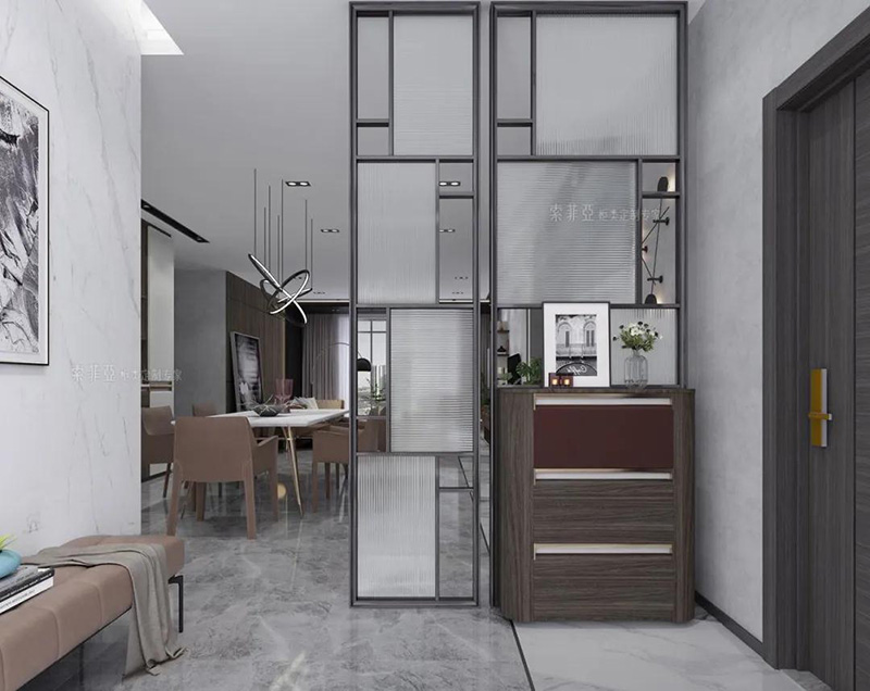 屏風隔斷一般多用在入戶空間或客餐廳之間的位置,一來分割空間布局,二來遮擋視線美化空間,更有隱私感。