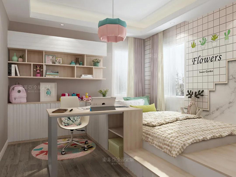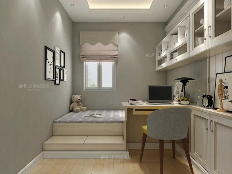 用書桌隔斷在臥室隔出一個學習區,是青少年房非常值得借鑒的做法。