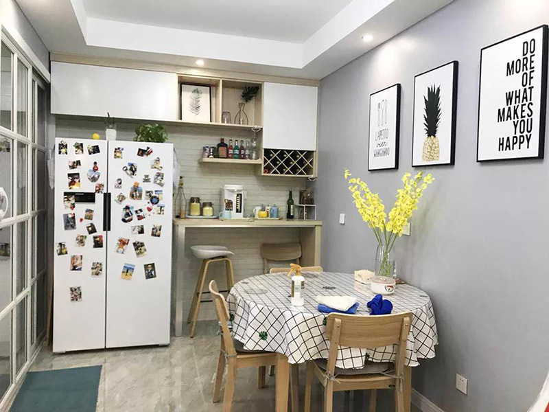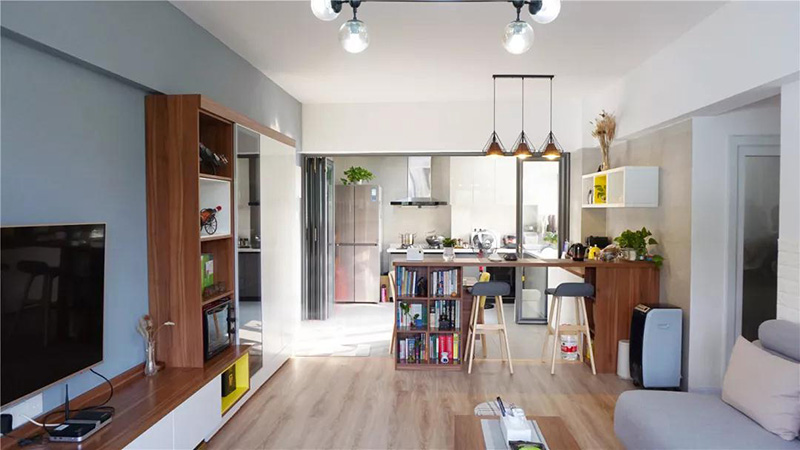 如今,客餐廳連在一起的戶型較多,以吧臺作隔斷分區,客餐廳讓空間更通透明亮,也不阻擋空氣流通。