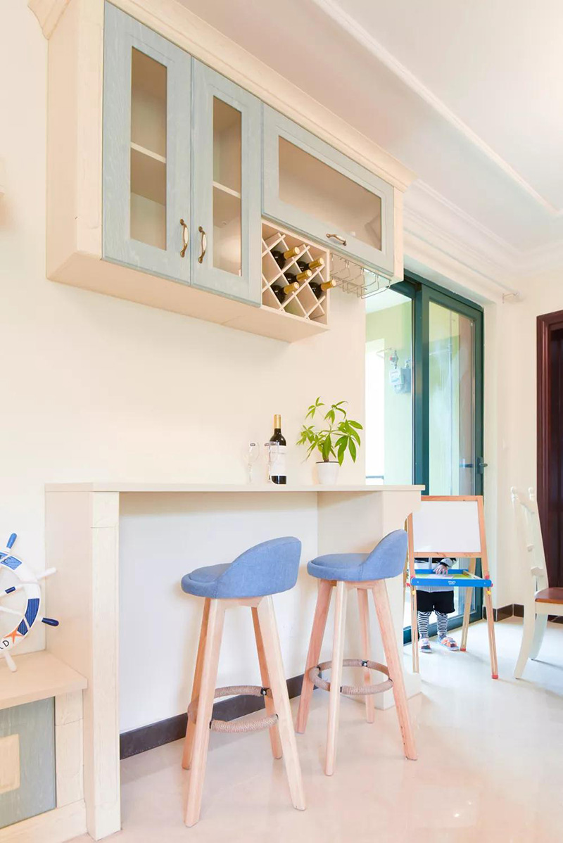 將島臺臺面加寬做成隔斷吧臺,還能充當餐桌,小孩在這讀書寫字,大人照看著也放心。