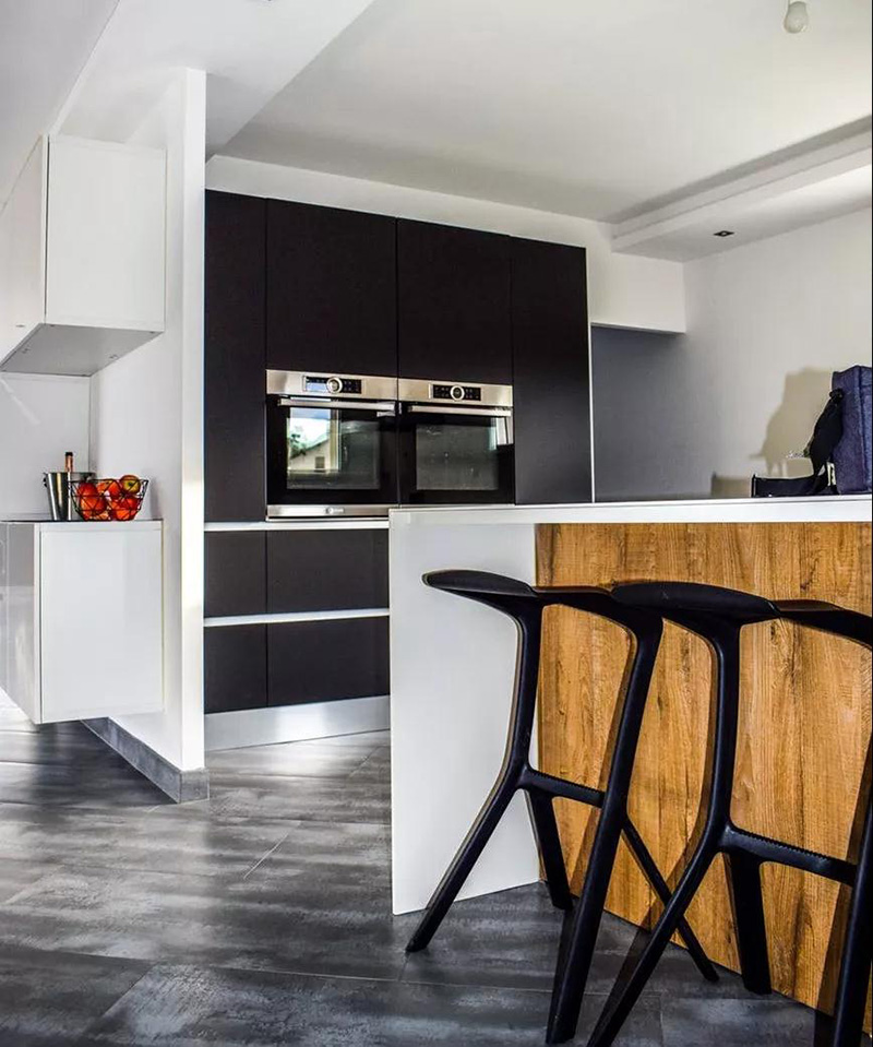 雖然開放式廚房是“舶來品”,但近年來也有很多年輕家庭開始接受開放式或半開放式廚房,而表姐愛上開放式廚房,則是因為擁有多重功能,還可以和吧臺完美結合的島臺。