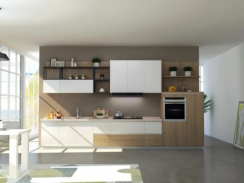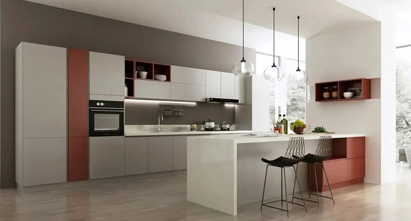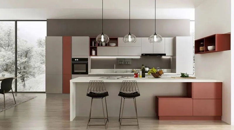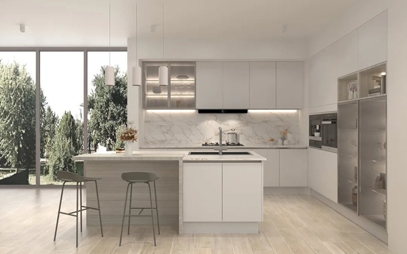 注重通透感:簡約風廚房更加靈動,在設計元素上多使用玻璃、開放式、鏤空等,加強廚房的通透感。裝飾上多強調線條感,保證廚房的通透利落。