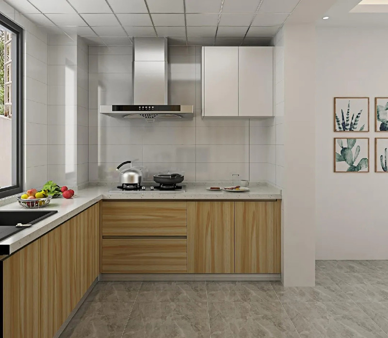 墻磚地磚:簡約風廚房的地磚和墻磚的顏色不可過于浮夸,多使用冷色調。或者也可以使用一些原木色來柔和櫥櫃整體的質感。