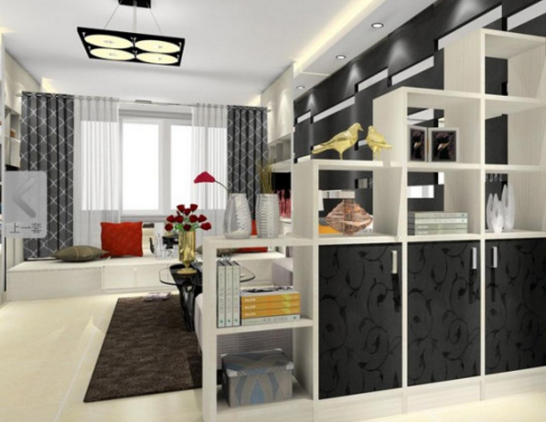想讓家居布局看起來時尚、典雅,那么選擇書櫃隔斷可以讓空間看起來很有韻味。白色的書櫃上面可以擺放很多的書籍以及裝飾物,而且書櫃隔斷給人的印象也是很深刻的,簡潔的線條,豐富的書籍,都讓我們眼前為之一亮。