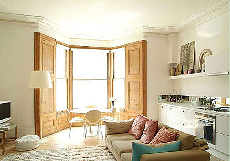客廳空間不大,后期軟裝布置后,家具太多就會顯得擁擠。如果將客廳延伸到飄窗位置,在飄窗部分放上一個舒適的沙發,再擺上一份小小的茶幾,簡單的會客廳就完成了,而且也擴容了客廳空間了。
