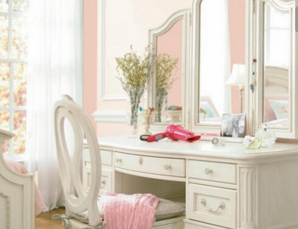 梳妝臺的鏡子在挑選的時候不能只隨便看看覺得可以就好了,梳妝臺的鏡子一定要是折面設計,這樣你在照鏡子的時候,可以看到自己臉的各個角度,清晰的看到自己哪個地方的妝容有問題。