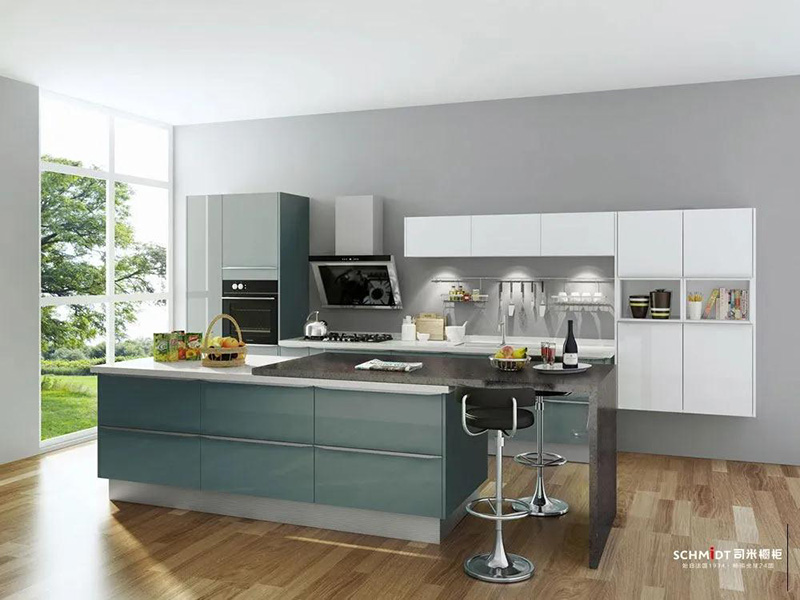 魅影門板采用優質的亮光烤漆,湛藍亮光與雅致白相搭配,以簡潔的視覺效果營造出時尚前衛的感覺,是典型的現代時尚風格櫥櫃的代表。