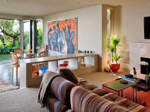 酒櫃隔斷可以讓客廳和其它地方的界限變得更加清晰,在選擇酒櫃時不妨采用白色的酒櫃隔斷進行裝潢設計,因為白色的酒櫃在時尚的客廳里能顯得更加別致,總之,一定要讓整個家看起來搭配協調。