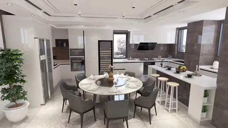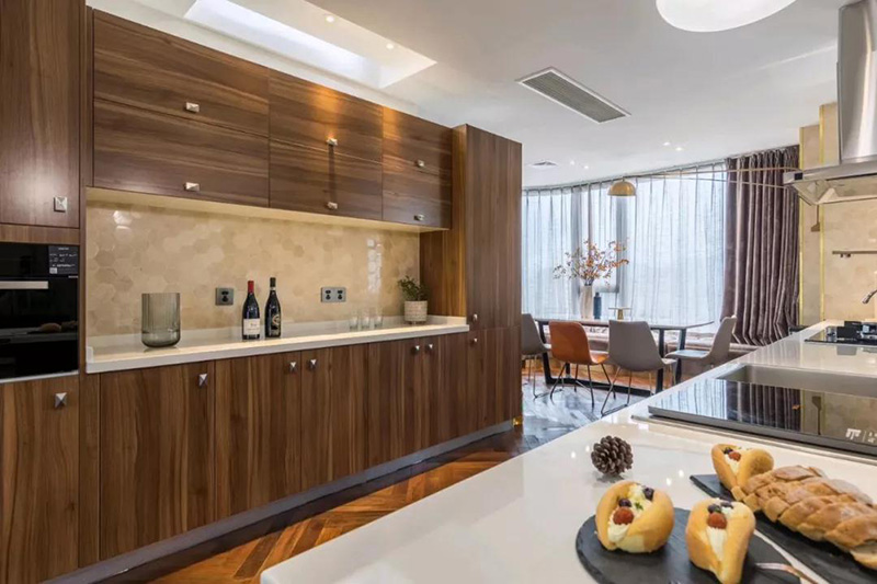 現代輕奢廚房,給人第一眼的感覺就是大方,沒有復雜夸張的雕琢裝飾,看似簡單的設計卻構成大氣的時尚感設計。