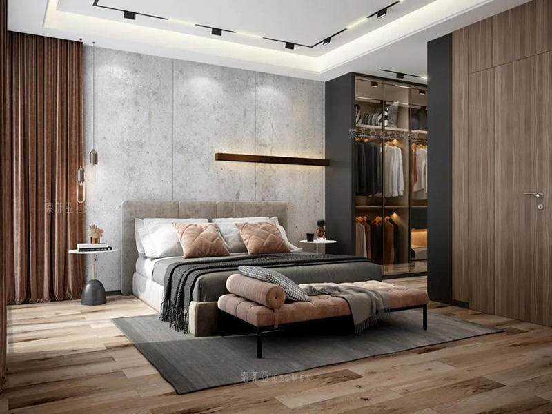 高級灰在實現奢華質感的同時,灰色系沉靜舒壓的特質,也能輕松營造出臥室的靜謐感和宜居感。