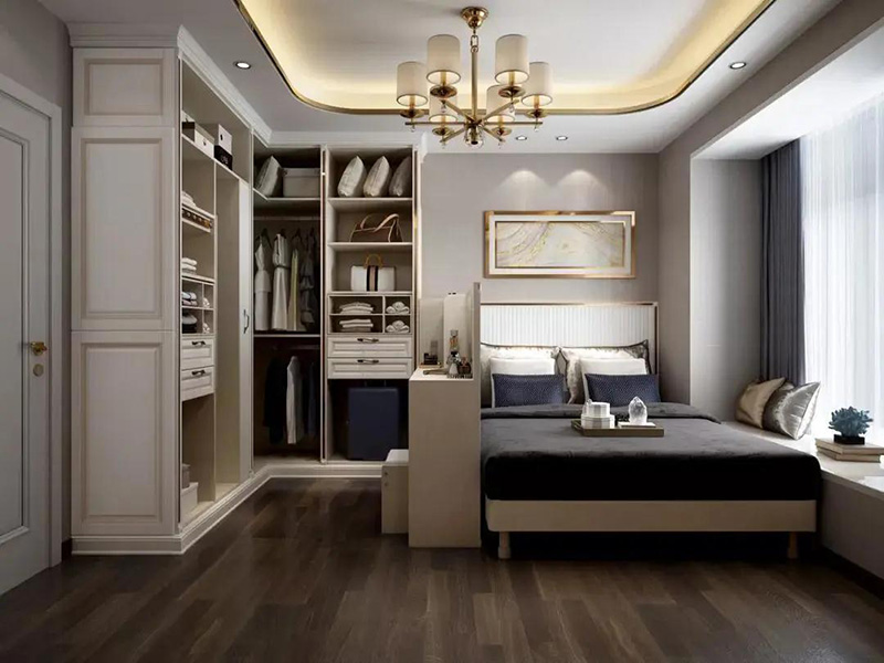 L型衣櫃可以在臥室轉角打造出的半圍合的狀態,拿取衣物更方便。
