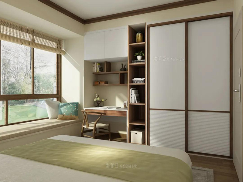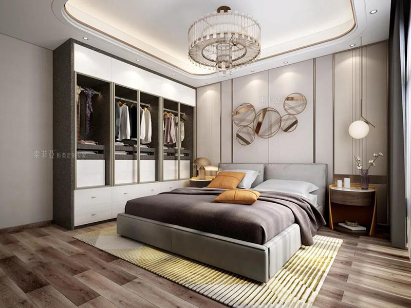 不過把衣櫃做到頂需要注意一個問題,那就是衣櫃最好選擇掩門而非推拉門。一是衣櫃做到頂了,采用掩門會比推拉門有更好的方便性(畢竟推拉門每次只能打開一個門);二是衣櫃裝到頂,由于櫃門比較高,采用掩門會比推拉門有更長的使用壽命。
