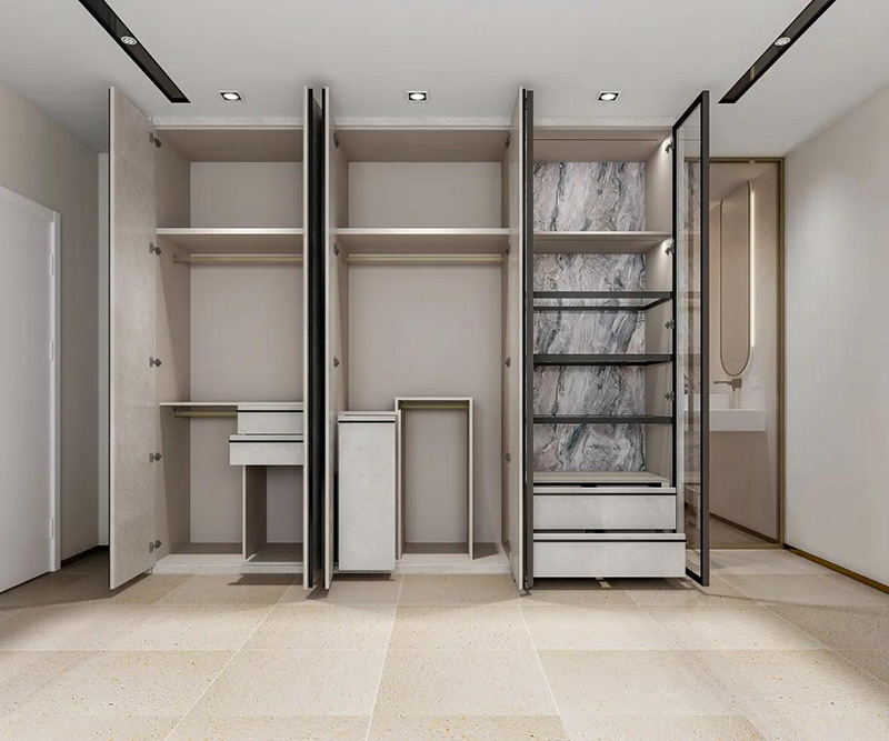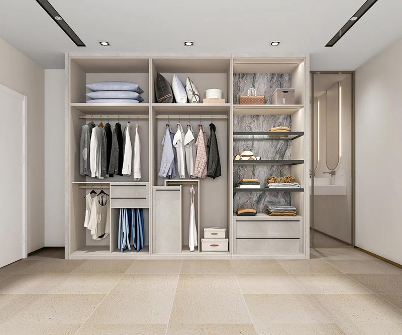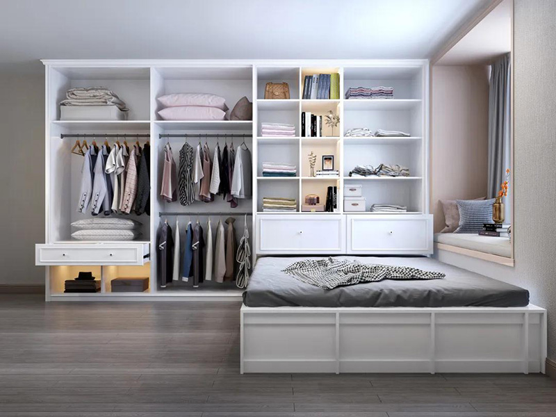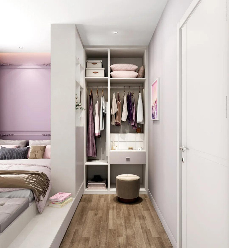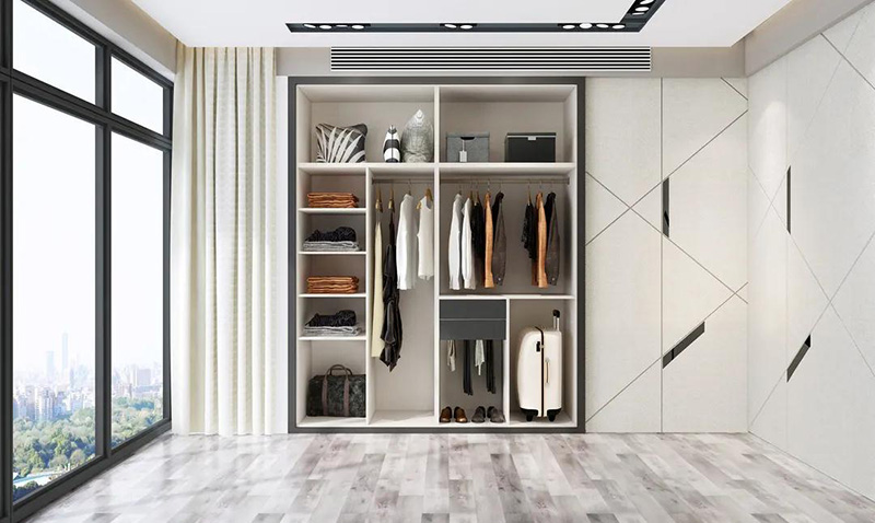 有人可能覺得,衣櫃的隔板越多越好,其實不然,隨著使用時間的積累,我們的東西會越來越多,如果隔斷太多,空間窄小,有時候放不下大件或者是靈活存放東西,不喜歡衣櫃過于拘束或者是有房間變動需求就可以選擇內部隔斷少的衣櫃布局。