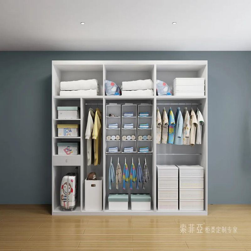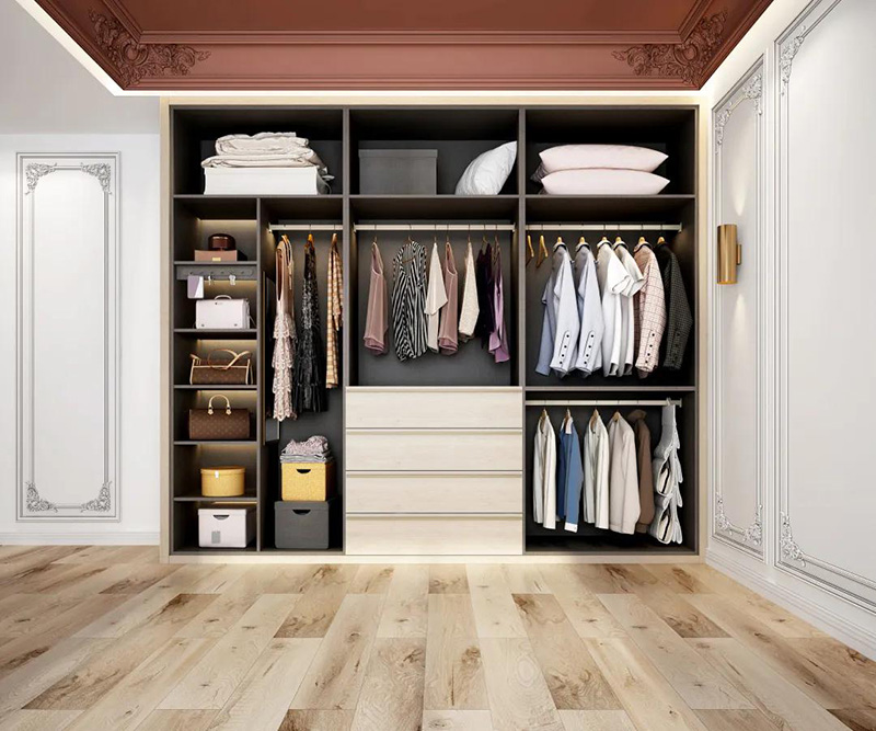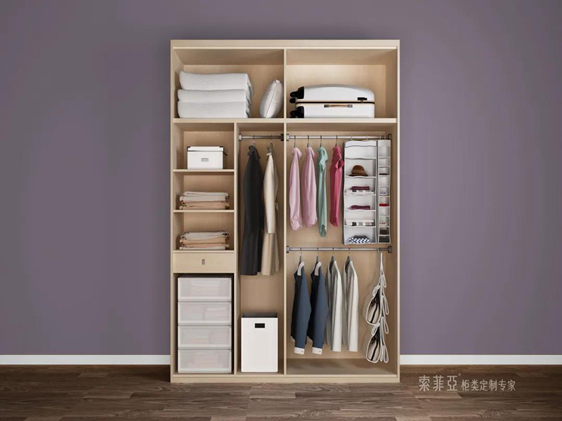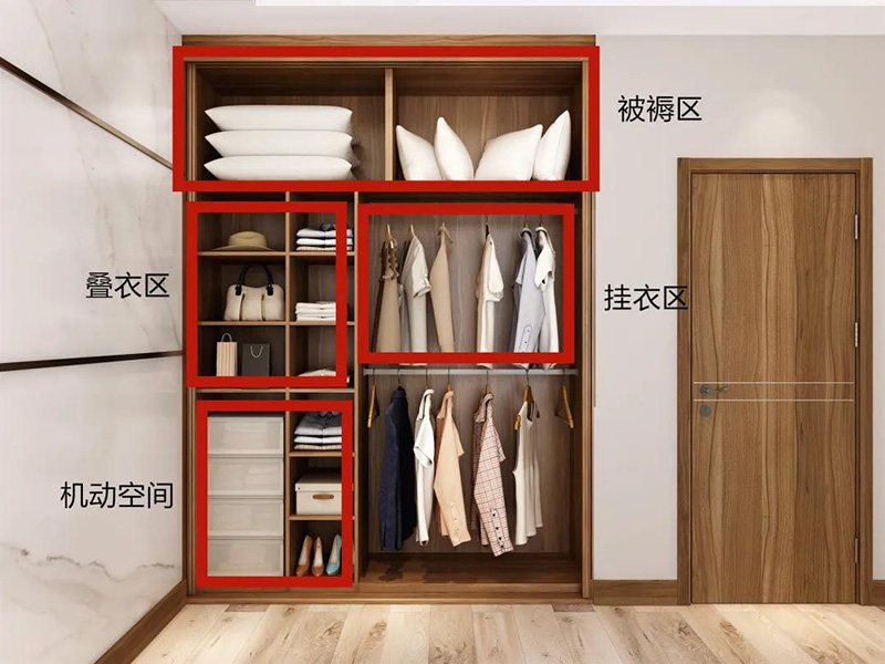 衣櫃的基本布局有:疊衣區、掛衣區、被褥區和機動空間。