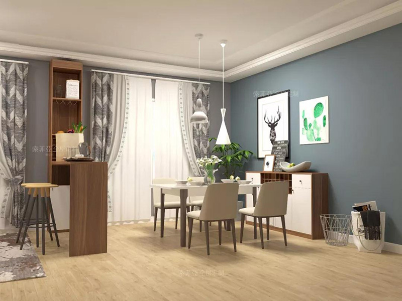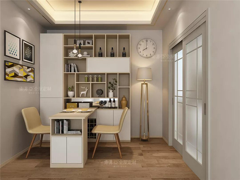 當餐廳靠近廚房布局時,可以采用玻璃推拉門,保留空間延續性的同時,避免了油煙問題對餐廳的困擾。