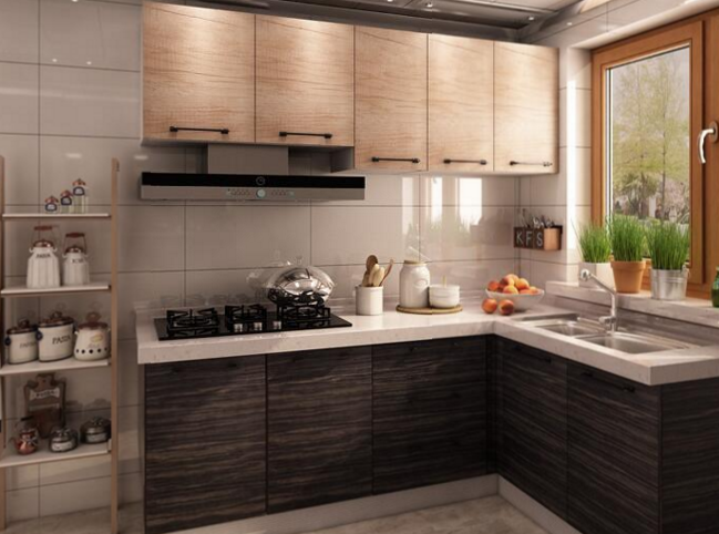 主要用實木和三聚氰胺板配合制作。實木櫥櫃紋路自然、高檔美觀,會就給人一種回歸大自然的感覺。另外實木櫥櫃是沒有任何添加劑的,所以實木櫥櫃是非常環保且無污染的,並且堅固耐用。