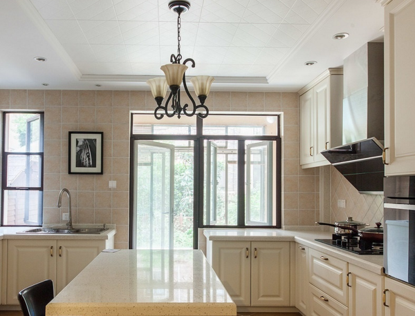 如果您喜歡鮮艷的色彩而且您的廚房空間又足夠大,您盡可以盡情將顏色揮灑在廚房,前提是整體色彩的協調統一。充滿夢幻的藍色、輕松舒爽的綠色、熱情奔放的紅色、尊貴大氣的黃色等一些靚麗的色調您都可以隨意選擇,當然,低調的銀灰色、傳統的白色和木色也可是不錯的選擇。
