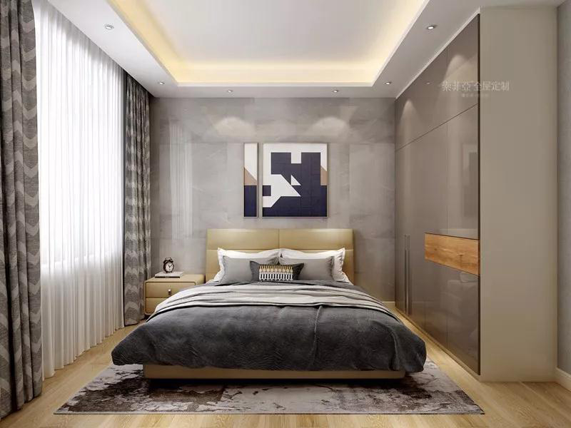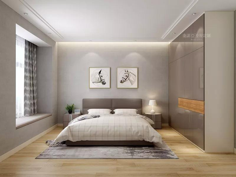 臥室充分體現了@Alex斷舍離的追求,只有床、床頭櫃和一整面到頂的衣櫃,三大件承包了臥室的起居收納。