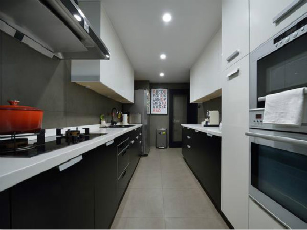 上圖就是一字型櫥櫃效果圖,簡約的布置,純凈的顏色,讓這個廚房空間更顯寬敞、明亮。