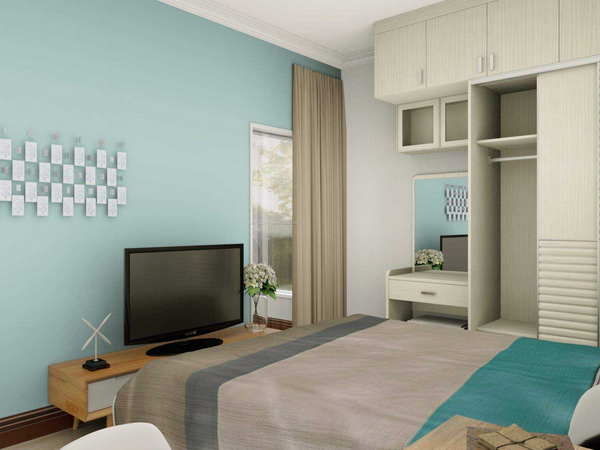 1.根據臥室環境來搭配。當然,簡潔是我們追求的。如果臥室墻面是石灰白,臥室衣櫃可以和地板相近的色系,或跟床相近的色系。