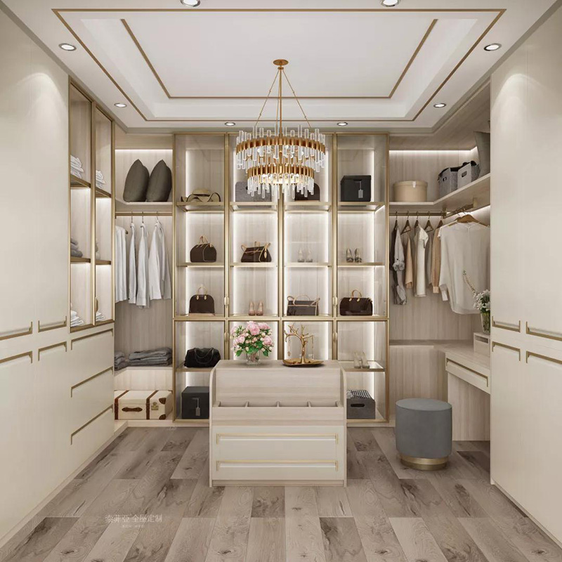 衣帽間在床的另一側,@Lam把它裝成U形布局,衣物、包包收放得當,精致的水晶燈、溫馨的花束、優雅的燈光…這可是妻子最滿意的場所了。