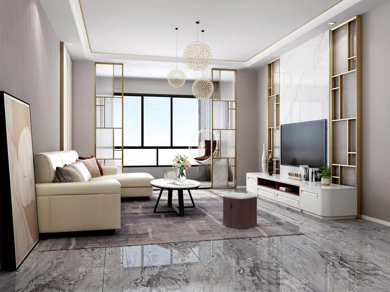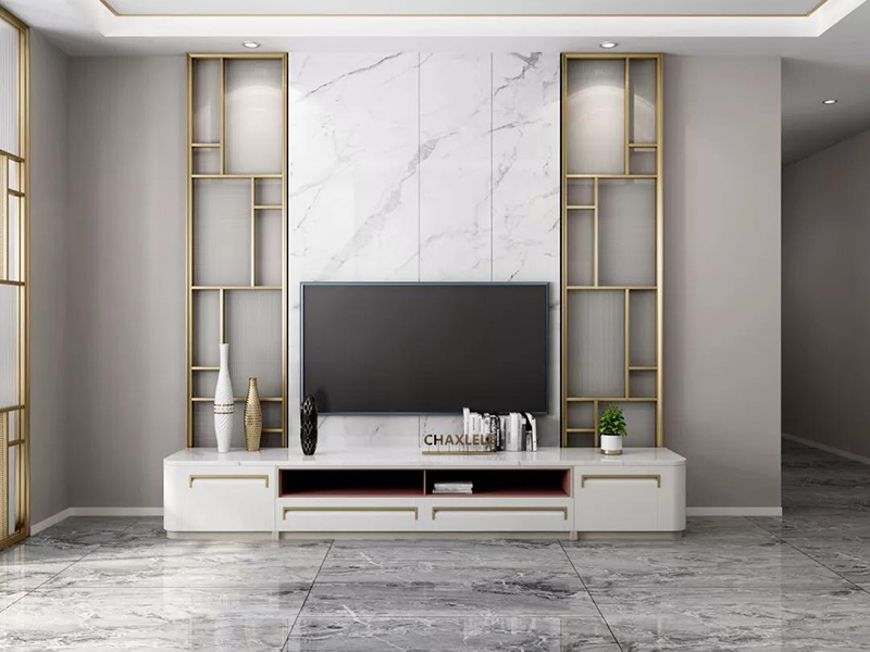 大理石搭配鎏金線條的電視墻,呈現出簡約的靈動美,既不會搶了電視的C位,又在細節上彰顯了精致。