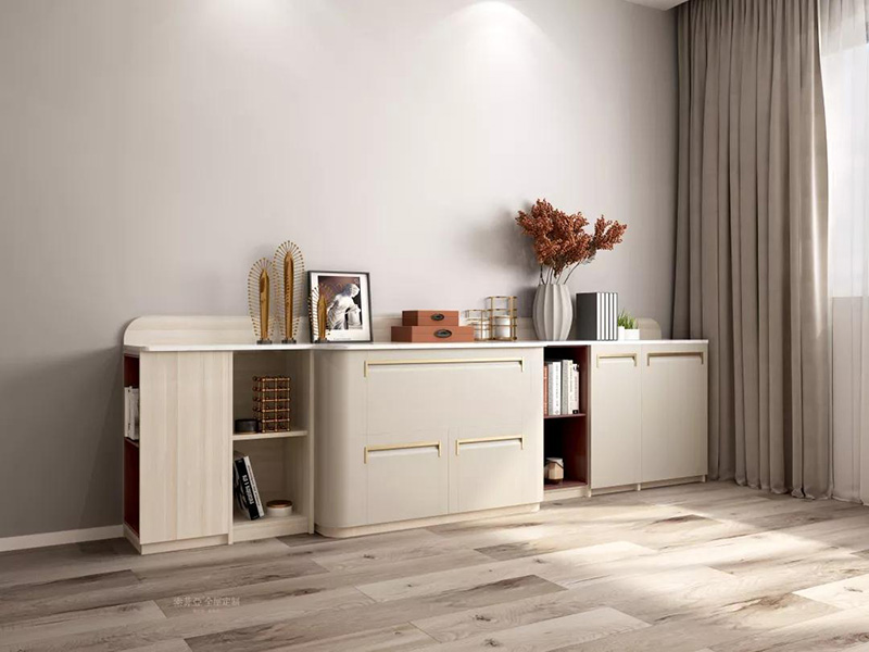 值得一提的是,電視櫃的邊角做了圓弧處理,不僅老人小孩路過、玩耍不會撞傷,還能讓空間更柔和舒適。