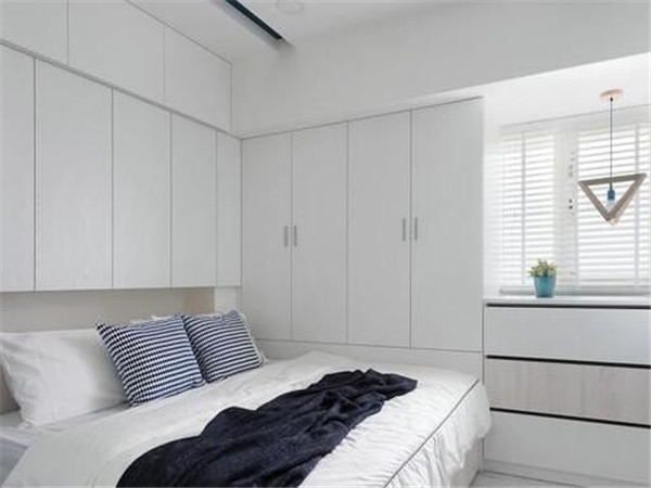 臥室中也是白色為主,但是打造了許多的收納櫃,這樣的話就不用再擔心收納問題了。