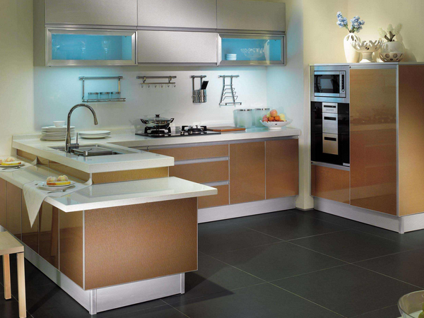 體現了一種現代感,目前非常流行,在整套廚櫃里起襯托作用,內鑲嵌玻璃質感細膩,歷久長新。
